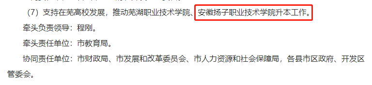 安徽揚(yáng)子職業(yè)技術(shù)學(xué)院升本工作已作為蕪湖市政府重點(diǎn)工作項(xiàng)目下達(dá)通知落實(shí)